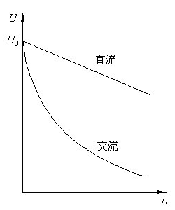 式中 α——距離衰減系數(shù),對交流α=√[(1/2)×(r/Xc)];對直流α=√(r/R)。