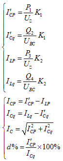 按圖1-3的試驗接線,測量出補償電流和殘余電流回路的有功功率及無功功率,從而計算出補償電流、殘余電流的有功分量及無功分量、系統(tǒng)的電容電流和阻尼率。